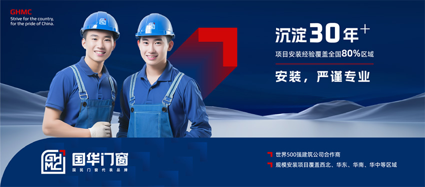 国华门窗拥有30多年的安装经验,专业团队遵循严格标准流程,安装前精准测量洞口,选择适配配件;